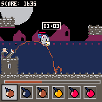 J'ai d'abord bricolé une gravité pour les trajectoires des bombes avec une friction.